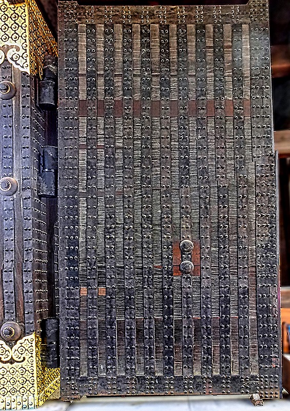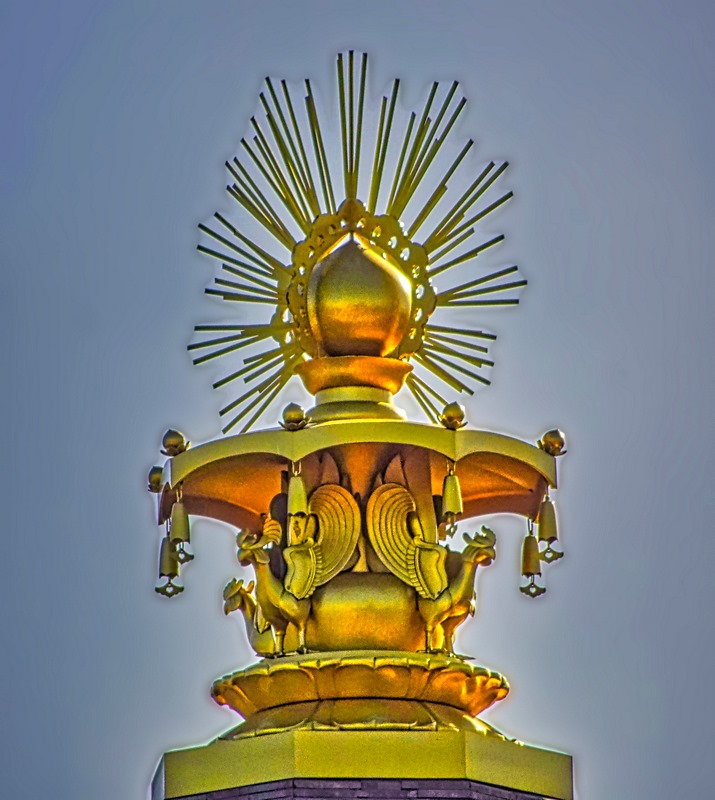 The five story pagoda is easily the most prominent building in the temple complex. Each floor reputedly contains a different set of religious artifacts. I say reputedly because, although entry was permitted if you removed your shoes, we did not climb the stairs here. Really not enough time. But Rick walked up the concrete stairs and took a photograph of the interior through the door.