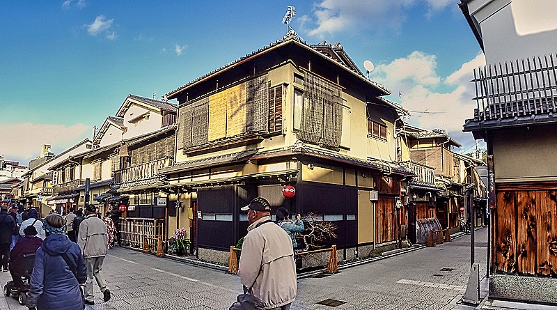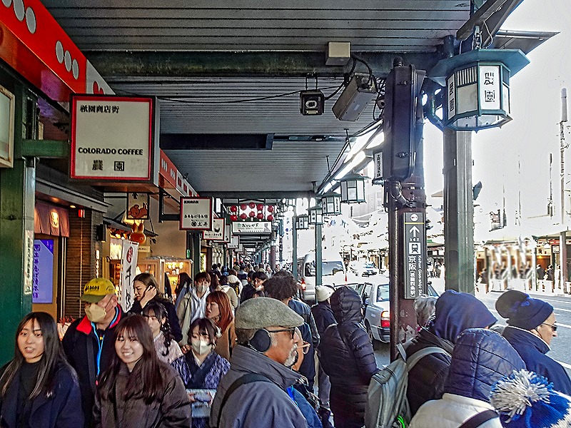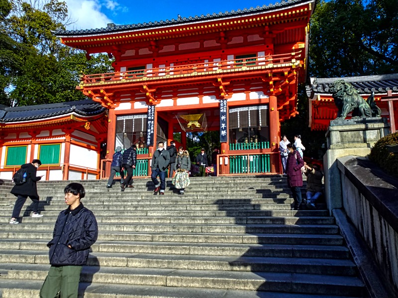 We did not visit either of these buildings, merely walked past their entrances and viewed their entrance gates at the tops of tall and wide stairways. That’s too bad, but we had limited time left to see Gion and it’s impossible to spend time at all the temples and shrines in Kyoto, since there are some 1600 Buddhist temples and 400 Shinto shrines in this city.