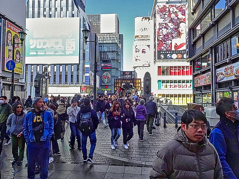 As always seems to happen when we have an overnight stay, we woke up on the morning of March 3 still in Kobe harbor. Today we had scheduled an excursion to Osaka, a lengthy bus ride away, on which we left early in the morning. With a population of about 2.7 million, Osaka is the third largest city in Japan and is a major commercial and financial center for the country. It is home to important international electronics companies like Panasonic and Sharp. People have lived here for at least 2,000 years, one of the earliest settlements in Japan. Like other Japanese cities, Osaka was subject to extensive Allied bombing near the end of World War II but was successfully rebuilt after the war.