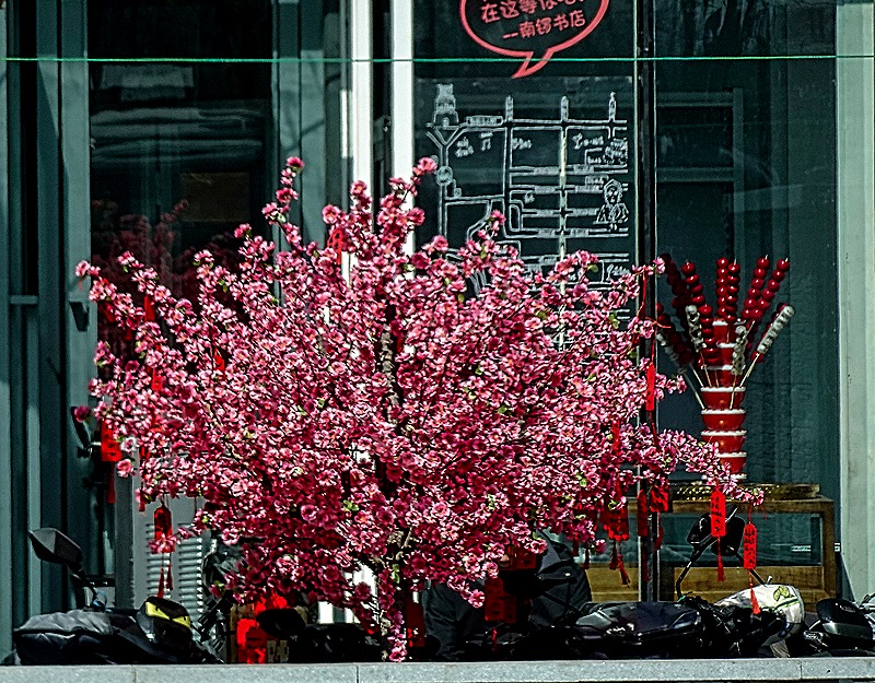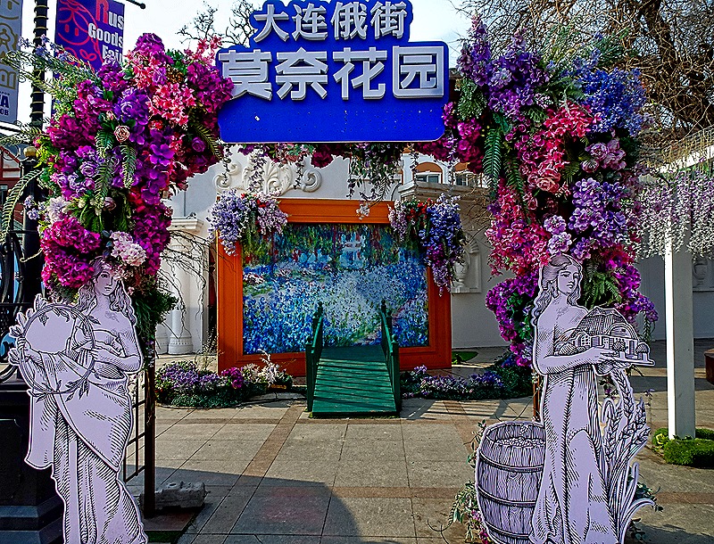 We saw some buildings seemingly dressed up for an occasion, such as with flower arrangements, but we don’t know what the occasion might have been. Maybe it was for our ship’s visit to Dalian . . . we were told we were the first cruise ship to stop here since the pandemic. Or maybe they keep it that way all the time to help attract tourists.