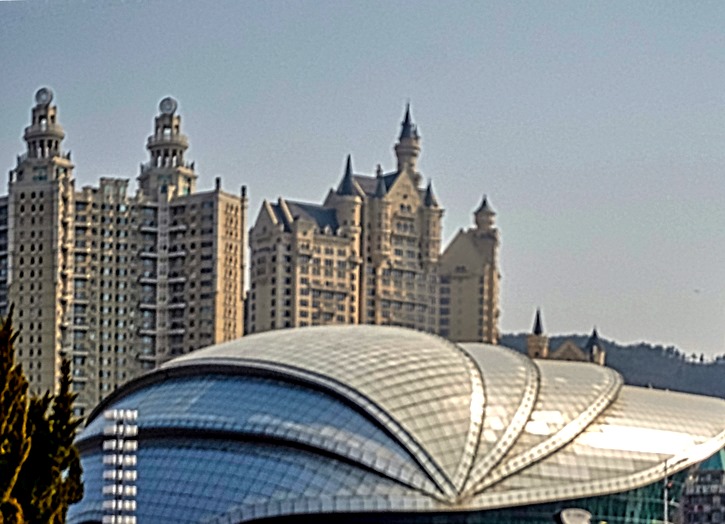 There was a shuttle available to downtown Dalian (a long walk away), but as mentioned in the previous post of our first day in Shanghai – https://baderjournal.com/2024/08/16/shanghai-china-day-1-2024/ – because we had not gotten Chinese visas we could only leave the ship on a HAL sponsored excursion (or one operated by someone approved for the purpose by the Chinese government). But HAL (Holland America) was only offering 3 excursions, all less than 4 hours long, so there was not much to choose from. We surely wanted to see what we could of the city rather than spend the day on the ship, so we signed up for the longest of HAL’s excursions as soon as the visa-free program was announced (we think we were the last to get places on this tour). So off we went in the morning after breakfast, driving through a city that turned out to be full of tall skyscrapers and open city parks.
