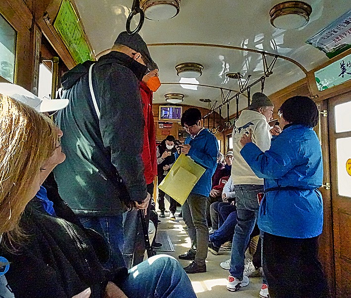 Reading the excursion description we (or at least Rick) had envisioned riding on an overpass or along the side of a hill with a panorama of the city out the window. It didn’t really say that explicitly, but that was what we were hoping for. Alas, no. This is an old fashioned urban tram, running (slowly) on tracks laid out on city streets, with little to see out the windows to the sides. And the ride only seemed to be about a mile in length. Our excursion was led by two very young guides, maybe 20 or so, who spoke excellent English but did not seem very experienced. They told us afterward that they had been very nervous about this excursion because we were the first cruise ship in town since the pandemic. If we were correct in our perception of their very young ages that means they probably had been too young to have done this before. The young woman guide had a microphone and did an explanation during our tram ride. She was quite articulate and had obviously prepared carefully for this. The guides were delightful, but the tram ride itself was disappointing.