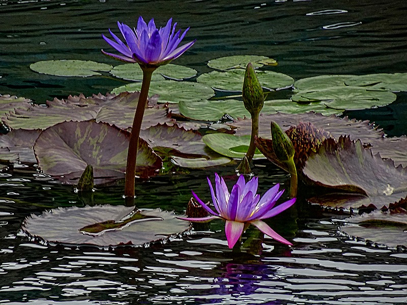 We walked past the large white Lamp of Enlightenment in its own garden spot in front of the golden Pavilion of Absolute Perfection, which sits on an island in the lotus pond between the striking orange Wu and Zi bridges.