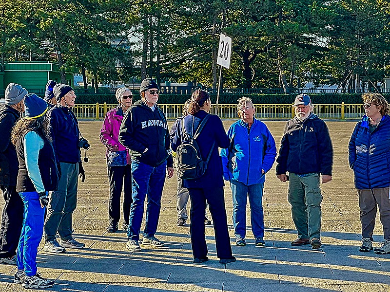 Between Tianjin and Hong Kong we had three relaxing sea days to recharge our batteries from the intensive days in Shanghai and Beijing. We spent time in our usual hangout, the Ocean Bar, for reading and catching up on the internet news. Zuiderdam has a lot of fairly quiet venues with upholstered chairs and tables but we have found few that feel comfortable for very long, particularly for folks like us who aren’t as young as we once were. But we settled on the Ocean Bar as the best of an unsatisfactory lot, better yet if you put your feet up on a table or another chair (although near the end of the cruise Henk, the hotel manager, distributed memos to everybody’s rooms asking that we not do this). One of our friends, Steve, is a watercolor artist who does a painting in each port. We bought his painting of the Meiji Shrine in Tokyo, which he delivered to us in the Ocean Bar on one of these sea days.