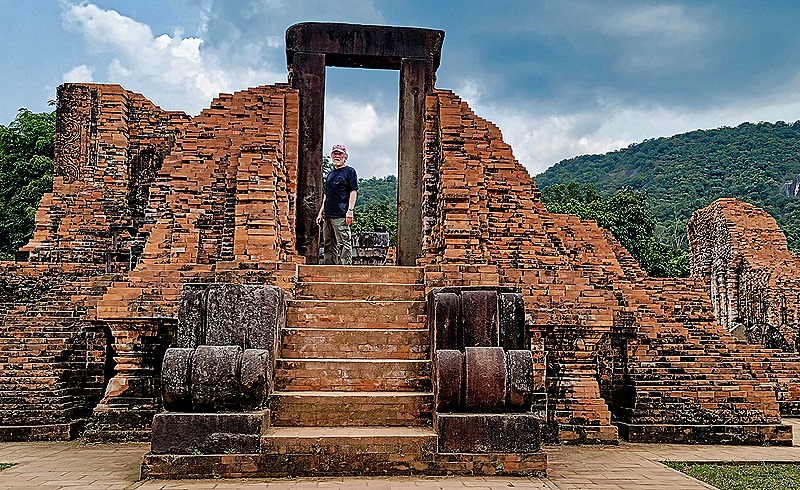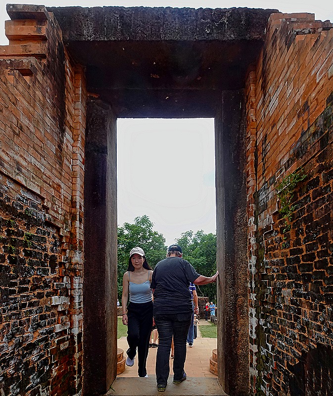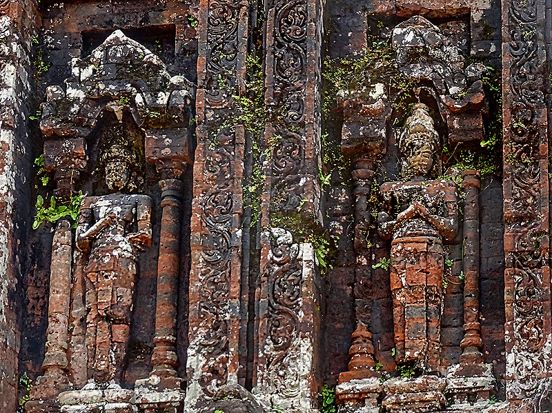 Most of the artwork from this site that survives has been moved to European museums or the museum in Da Nang we visited later. We did see what is left of a sitting headless sculpture and there are other relief sculptures that were carved directly into the brick walls.