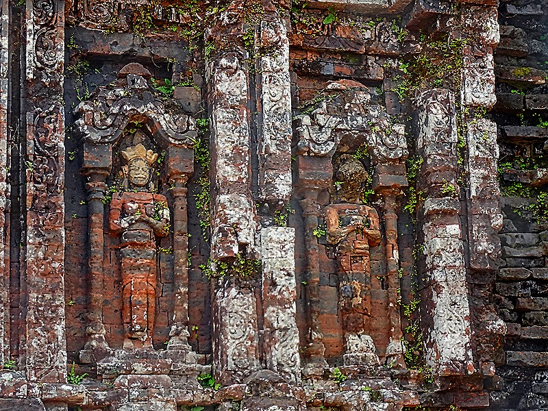 My Son was the religious and cultural center of Champa, which occupied most of what today is central Vietnam and was populated by the Cham people. The Cham were the original indigenous people in this area, having immigrated by sea some 2,000 years ago. They were heavily influenced by India and practiced Hinduism. My Son was a large complex of Hindu (and later Buddhist) temples built between the 4th and the 13th centuries, with each new king adding a new temple complex. The temples were dedicated to the Hindu god Shiva. It is thought to be the longest inhabited archaeological site on the Southeast Asia mainland.