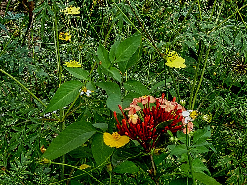 We left the archaeological site to return to the bus at the entrance. This time we had to walk the whole way and, although the surroundings were nice, it was really very hot. Probably not a good choice for people with walking difficulties especially since our guide was always in a hurry. We saw many flowers in the woods and fields and along a man made water feature, perhaps a reservoir. We did pass one more of the old buildings up on a hill in the woods.