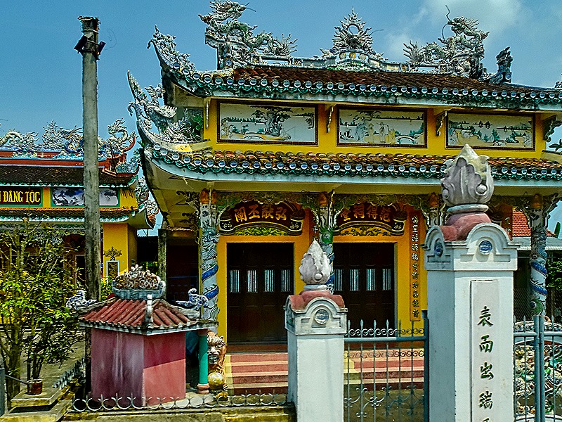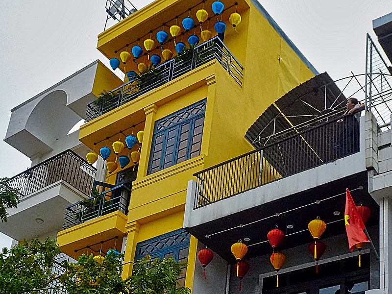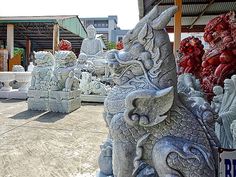 Driving back toward Da Nang we passed some more colorful buildings and made a pit stop in a small town at the foot of the Marble Mountains, where a number of shops had large marble sculptures on display (way too big to carry home).