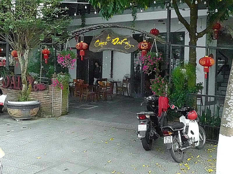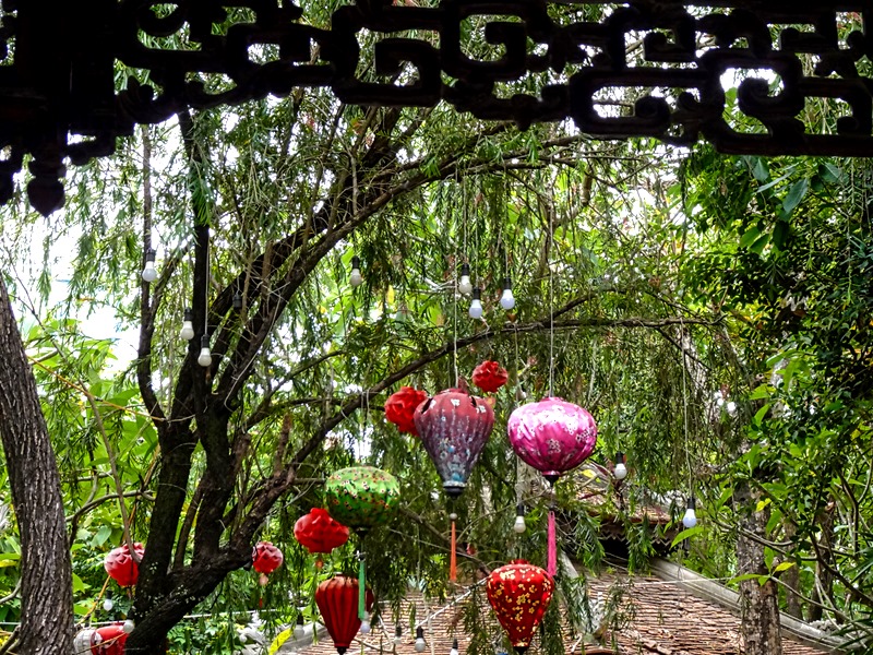 Back in Da Nang, we stopped for lunch in a nice restaurant off on a side street away from the busy traffic. Several courses of good Vietnamese food, some in sculptured presentations, and outside it was surrounded by gardens.