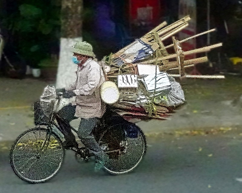 Speaking of motorcycles, anyone who has visited Southeast Asia knows that this (along with bicycles) is the ubiquitous form of transportation here. We have seen many creative uses of motorcycles to transport tools, boxes and even a family of five. Creative and interesting, but it doesn’t always look very safe. Some people here also bundle up in the heat of summer as if it were winter time, to protect their skin from the sun we have been told.