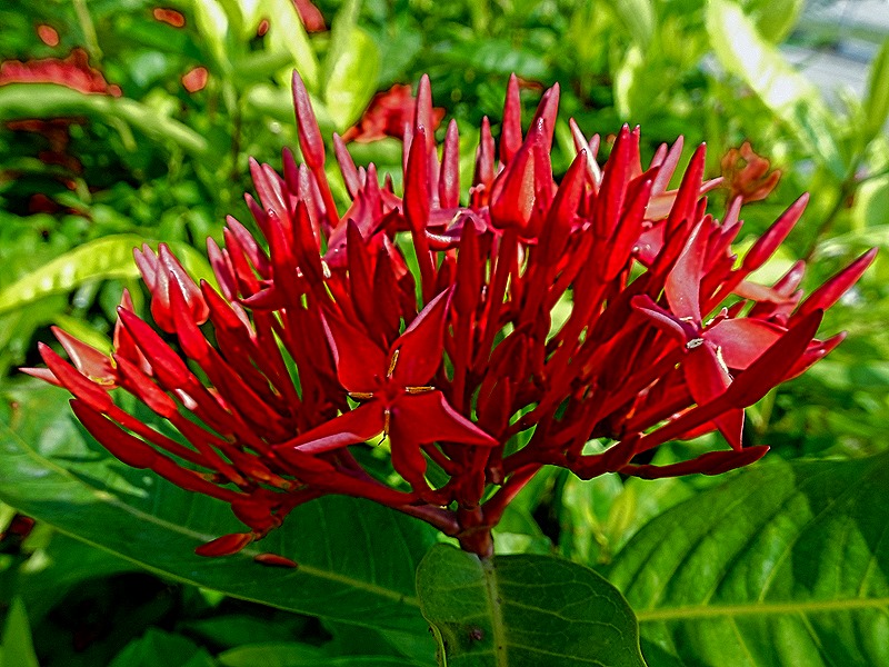As we passed the gardens we had nice views of the three-tower, one-roof Sands hotel and the Singapore Flyer Ferris wheel, and also of the downtown clump of high rises. And as we approached the hotel there were (as always, it seems, in Singapore) more nice flowers.