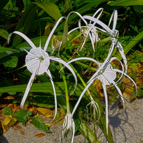 The walk back to the ship seemed much longer than the walk into town in the morning, mostly because we were tired and it was so hot and muggy. We saw some nice flowers and we stopped just before reaching the Helix Bridge for a drink and a bite to eat in a small Italian fast food restaurant. We walked back across the bridge, through all the construction and along the long covered walk parallel to the ocean front (where local folks were fishing) to the cruise terminal. If I remember correctly, we ended up walking a total of about 13 miles in these sauna-like conditions and by the time we got back we were running on fumes.