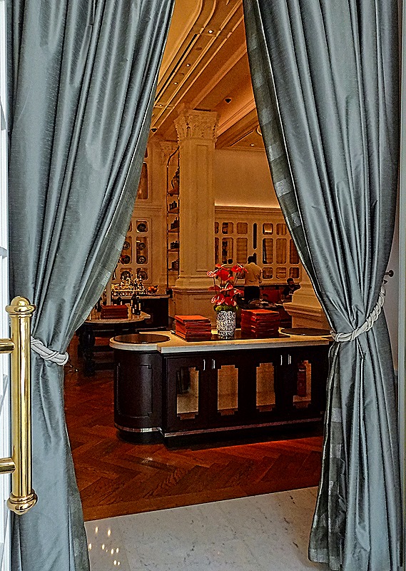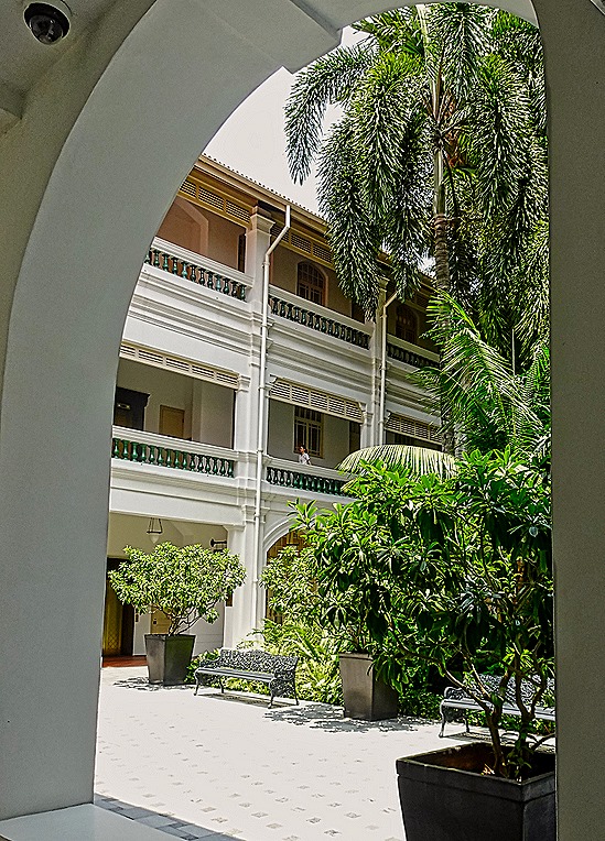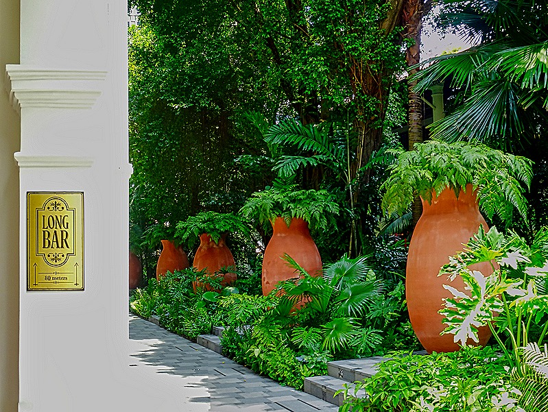 The Raffles Hotel has long been a prime landmark in Singapore. It began as a private beach house in the early 1830’s and was expanded into the 10 room Raffles Hotel in 1887. It has been expanded and renovated and has changed ownership a number of times over the years and is a good bit larger today, but still has a reputation as an elite hotel. Its most recent renovation had it closed on our last visit to Singapore in 2018 but it was open for business when we visited today.
