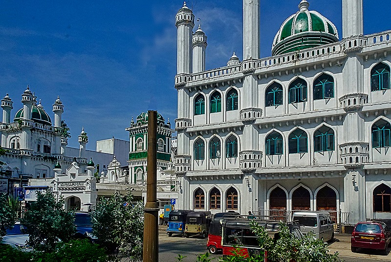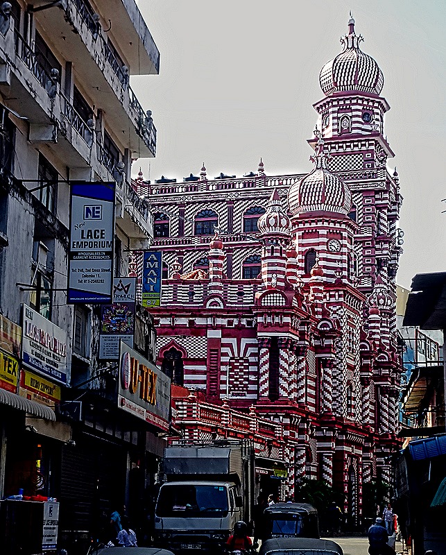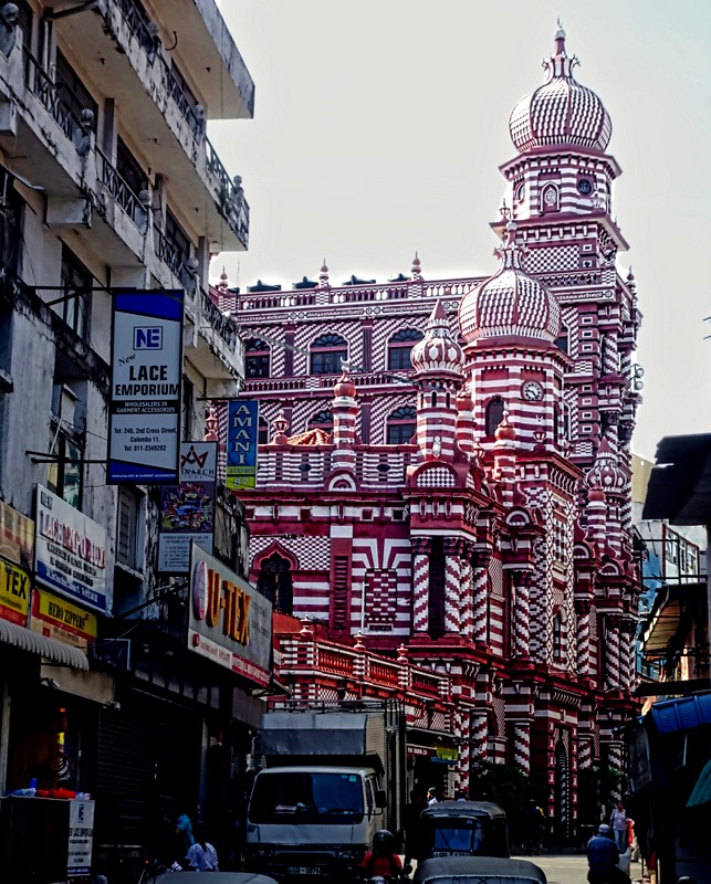 On the way to our first stop through the streets of Colombo, we passed several notable landmarks (shown here in no particular order). First was the Jami-Ul-Alfar Mosque, an unmissable large red and white candy striped building not far from the port. It opened in 1909 and was expanded in 1975.