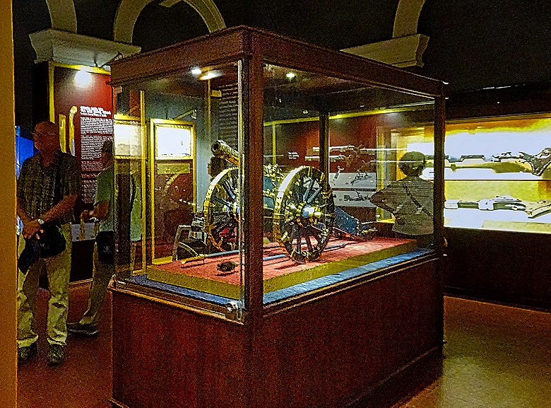 There was no way we would be walking anywhere for a second day here, so it was a good thing we had booked an excursion for today with our travel agency to visit some World War II sites. Before the war Singapore was a British colony, very important because it was the hub for trade going by sea between the Indian and Pacific oceans (as it still is today). It is an island just off the southern tip of the Malay Peninsula. The peninsula to the north was largely forests, which the British thought would be impassable to an army, so the island was heavily fortified with large cannons designed to fire hull penetrating shells to stave off any attack from the sea. It was called “Fortress Singapore” and was thought to be impregnable.