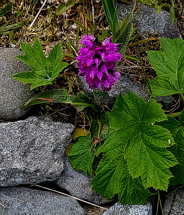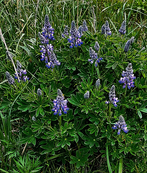 We made two more stops. The Unalaska Public Library was not on our itinerary, but there were at least three librarians in our van who all expressed interest in seeing it. So our guide compromised, taking us to see the library but not to leave the van for a visit. It looks like a very nice one. Then we stopped at the Museum Of The Aleutians, where our guide was the director. It was an interesting small museum with good information and exhibits, especially about the Aleut people that originally lived here. But importantly it also had a public restroom, which made the rest of the trip much more pleasant than it might have been! Outside the museum there was a large field with numerous flowers and a view across the bay.