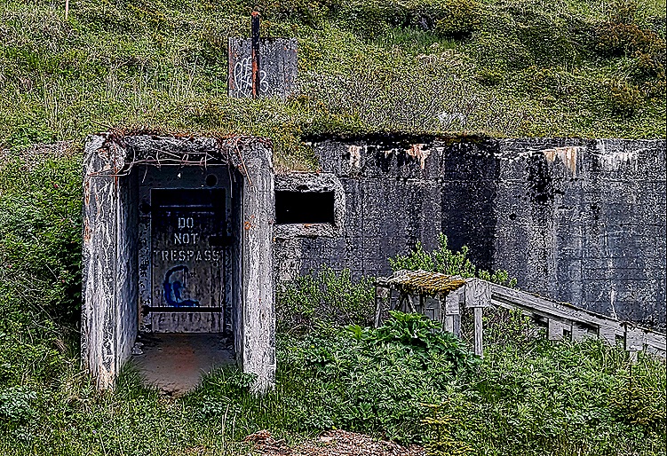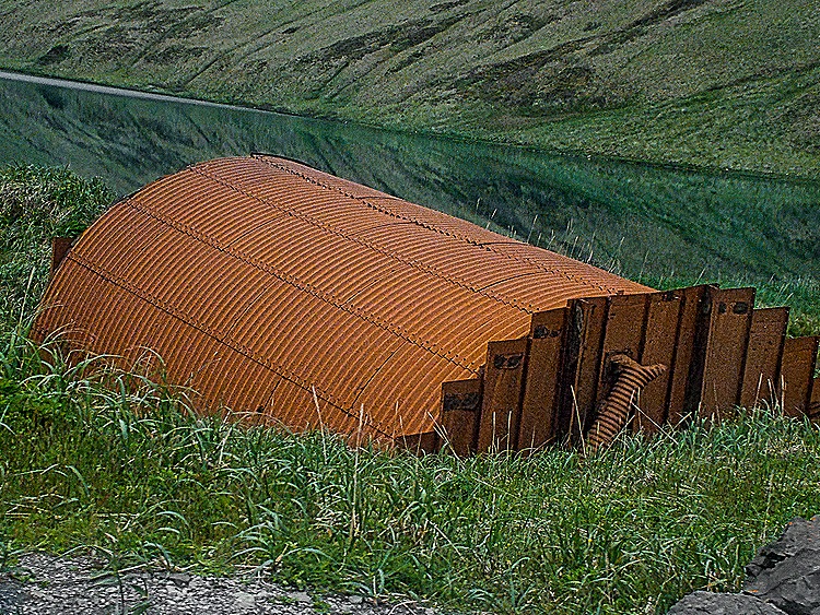 The year before the United States entered World War II the government began building up a military presence here. The Aleutians are close enough to Japan that it could have been used as a convenient base to attack the mainland US. So bunkers, quonset huts, artillery emplacements and a landing strip started appearing here in anticipation of a possible Japanese invasion. The Japanese did not actually invade Dutch Harbor but they did conduct bombing raids here on June 3-4, 1942, just six months after Pearl Harbor. They also occupied two of the more remote islands in the archipelago, Attu and Kislak, for a couple of months before being driven out by the terrible weather and American attacks. We did not climb Mt Ballyhoo to visit the main fort and guns installed to protect the area, but we did see some of these old fortifications in Summer Bay and also on the side of Mt Ballyhoo near where we were docked.