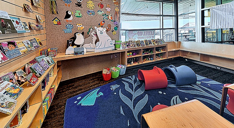 The library across the hall was spacious and welcoming. In addition to all the books it had a variety of local artwork on the walls. The librarian was friendly and showed us around.