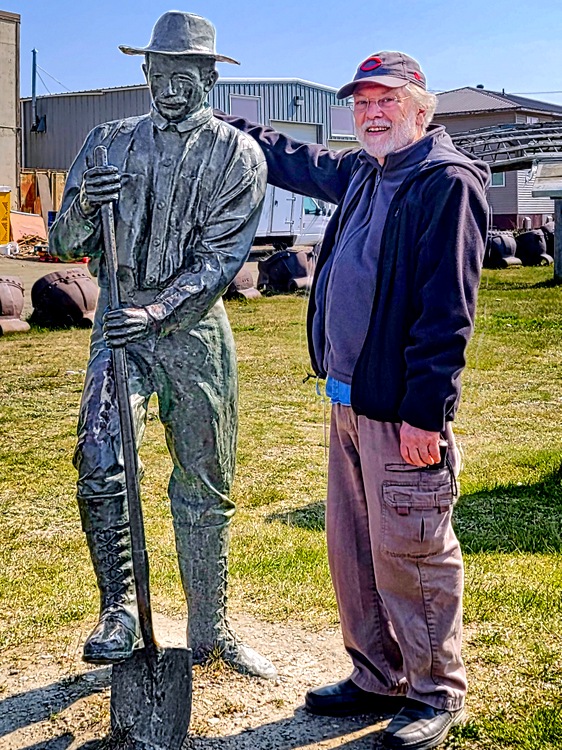 Nome’s original name was Anvil City and we visited Anvil City Square. This large open space contains what Nome claims is the largest gold pan in the world (disputed, we understand, by a town in Canada), and statues of the “Three Lucky Swedes” and the two indigenous boys thought to have shown them where the gold was.
