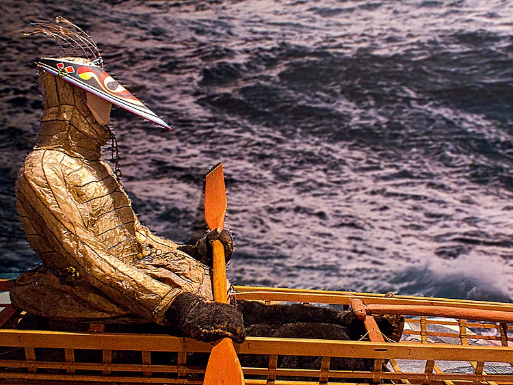 As we sailed south from the Arctic Circle we could see the Diomede Islands far in the distance. These are two small rocky islands situated close together in the middle of the Bering Strait, about 16 miles from Alaska and some 28 miles from Russia. Big Diomede Island is Russian territory and Little Diomede Island is part of the United States. The islands are just 2.5 miles apart but the international date line runs between them. For this reason some people (including our captain) call Big Diomede “Tomorrow Island” and Little Diomede “Yesterday Island.” During the winter the sea between them freezes over and it would be possible to walk from one to the other, if that were permitted (it isn’t; this is an international border between Russia & the United States). A small group of a little over 100 Native people live on Little Diomede (their village is on the west side between the islands where we couldn’t see) and Big Diomede now houses (we understand) only a Russian weather station and some border guards. After World War II the Native people on Big Diomede were relocated (involuntarily) to the mainland and it became for a while a military outpost. Vitus Bering named the islands after the Orthodox Saint Diomedes on August 16, 1728, which is the Russian Church’s holiday dedicated to him.
