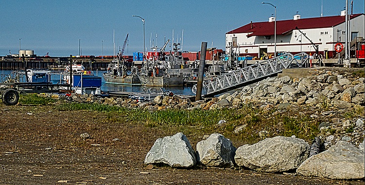 HAL had no excursions available here and, as far as we know, there was no shuttle bus into town. We were able to book a tour conducted by the director of the Museum of the Aleutians. So in the late morning, after breakfast, we went out on the dock to await the tour van. This is an industrial dock with no cruise terminal so we waited in the parking lot. It was not really cold and very little wind, but chilly enough to wear a light jacket.