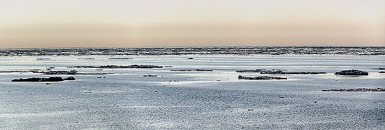 During the night after we left Nome, however, we still didn’t know whether we would be able to reach the Arctic Circle, the Captain’s discouraging presentation two days earlier having been the last we had heard. In the middle of the night Rick got out of bed to go to the bathroom, as often happens with people our age, and then looked through the windows to see whether there was any floating ice No visible ice, but the summer solstice is the longest day of the year especially in northern Alaska, the land of the midnight sun. So that is what this picture shows, though probably at an hour or two after midnight.