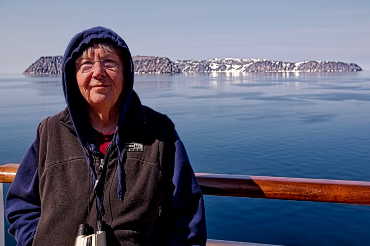 The Summer Solstice was on June 20, 2025 and the official title of this voyage was “Alaska Arctic Circle Solstice” cruise. So today, June 20, has to be the signature event for this journey, right? Last year HAL did this itinerary for the first time and they were unable to reach the Arctic Circle on this date (or at all) because of massive sea ice blockage. So we were concerned about that, especially after the presentation on June 18 by the Captain, the ice pilot and an ice expert who told us there was already a great deal of sea ice in the Bering Strait and we were very unlikely to make it through to the Arctic Circle. Darn!