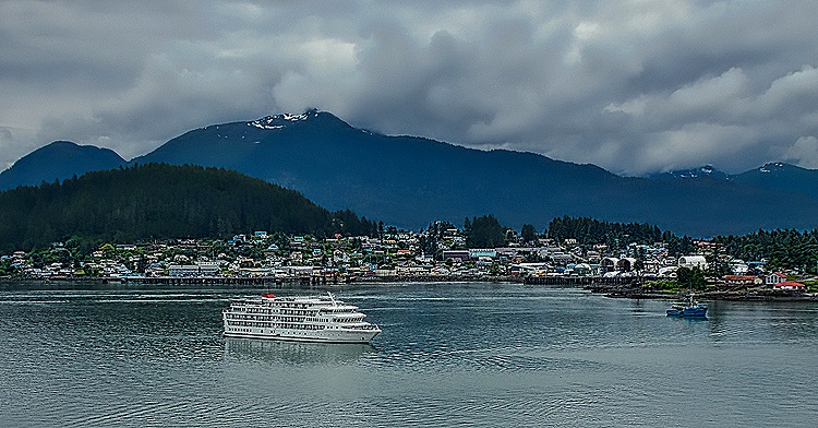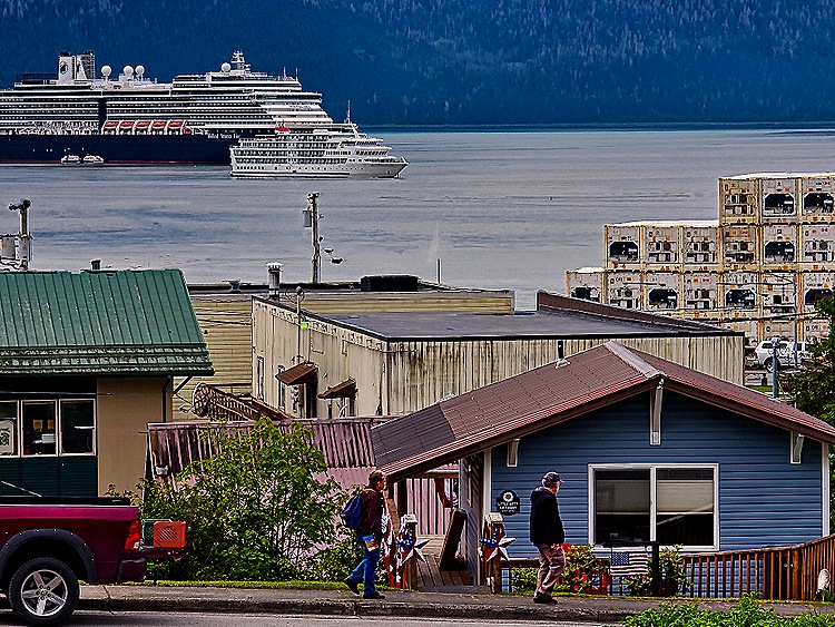 A city of a little more than 12,000 people located on Kaien Island, Prince Rupert has the third deepest ice free harbor in the world. The Tsimshian people have lived in this area for thousands of years. It was incorporated as a city in 1910 after its growth was fed by its designation as the western terminus of the Grand Trunk Pacific Railway, a transcontinental railroad. The city was named after Prince Rupert of the Rhine, a nephew of King Charles I of England; Rupert was a leading (and brutal) Cavalier general during the English civil war and the first governor of the Hudson’s Bay Company. Fishing is a major industry here, and for most of the 20th century Prince Rupert was considered the halibut capital of the world. As the wettest city in Canada Prince Rupert is nicknamed “City of Rainbows.” Westerdam was docked at the city’s waterfront in what is known as Cow Bay. It seems that in 1908 a dairy farmer brought a herd of cows here on a barge. The dock wasn’t prepared to receive cows at that time so he herded them into the water to swim ashore. Ever since this has been Cow Bay.