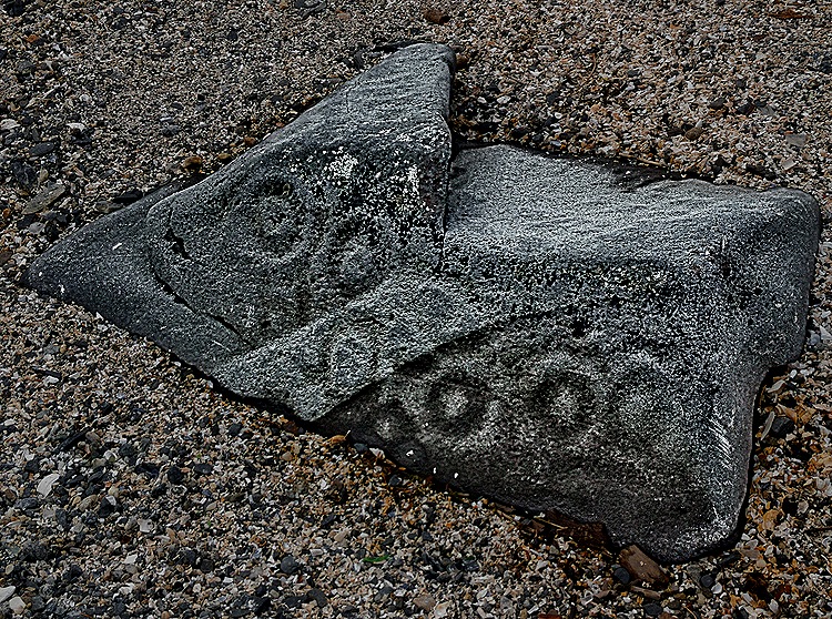 We took the long (mostly uphill) walk to Petroglyph Beach. It is a fairly large and very rocky area next to the water. This is designated a state historical area and they have built wooden stairs down to a platform just above the beach which contains explanatory signs and replicas of some of the petroglyphs. There are several dozen petroglyphs, designs carved in stone, scattered throughout the beach which are said to date from as long as 8,000 years ago. They are not easy to spot because the stones are rather dark and many of the carvings are monotone. But we did find a few. We understand that some of the better ones are in the local museum, but we didn’t make it there.