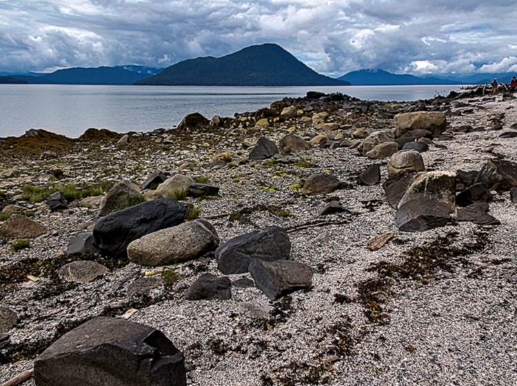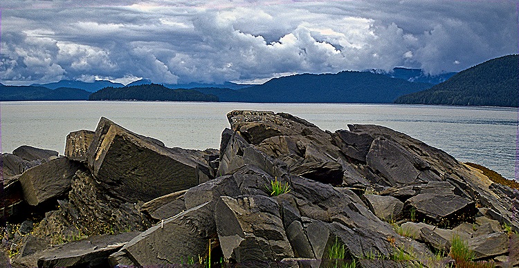 The view across the water from the beach was pretty stark, at least on this rather gray day. Across the water is uninhabited Woronkovski Island, named for a Russian explorer, which is separated from Wrangell Island by the Zimovia Strait. The northern tip of Woronkovski Island is called Elephant’s Nose Point because it resembles an elephant’s head with a long trunk extending along the water. It was named in 1878.