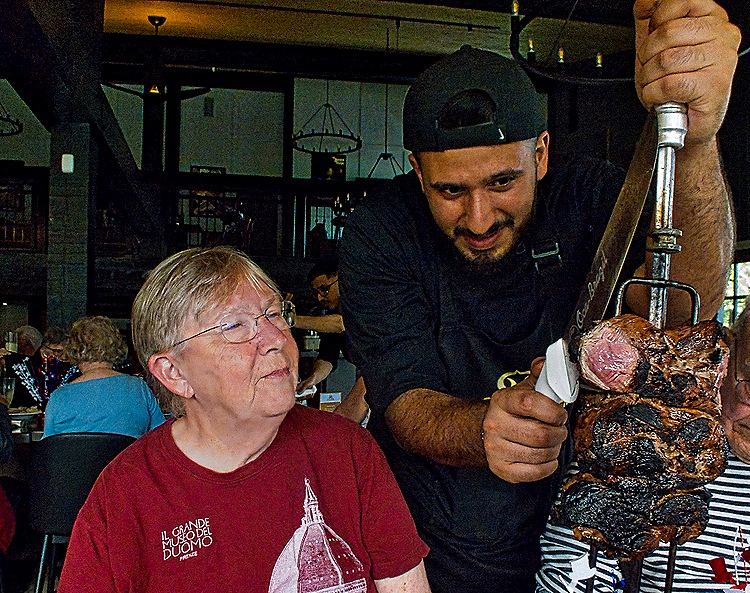 We visited Seal Cove, a smaller harbor around the corner of the island from where our ship was docked. There is a sea aerodrome located there and a seaplane was parked by its dock. We walked to the Arabisk Mediterranean Restaurant, where we had lunch. It was quite a restaurant, owned and operated by a family of Lebanese origin. If you have been to a Brazilian steakhouse you know how this works. There was a long table with salads and mezze, then after you sat down the waiters came around with a variety of meats (beef, lamb, pork, chicken) skewered on swords, from which they would slice some for you. And they keep coming back until you say “No more!” One of the best meals we have had on a cruise ship excursion.