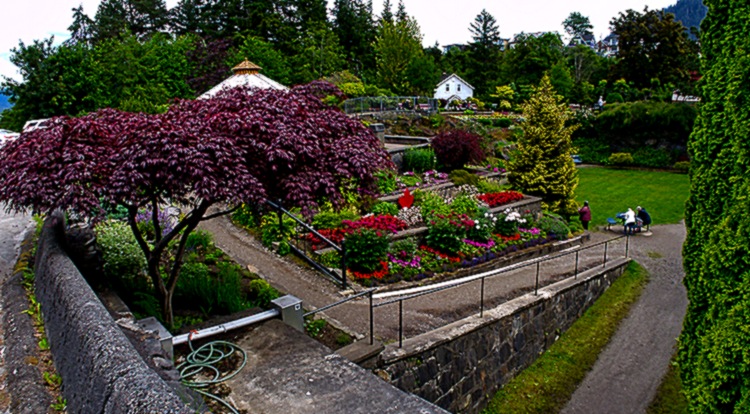 Near the courthouse is the Prince Rupert Sunken Gardens, built down the sides of a large gully-like space. This space originated in the 1920’s as the intended location of the courthouse, which was ultimately built nearby, and during World War II it was used as an ammunition bunker. For at least the last 20 years the gardens have been maintained by community volunteers who plant new flowers every spring. The bottom layer includes benches, chess tables and electrical outlets to help people enjoy this bright and attractive area.