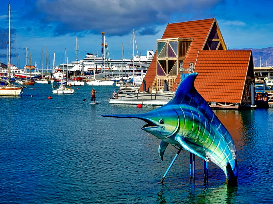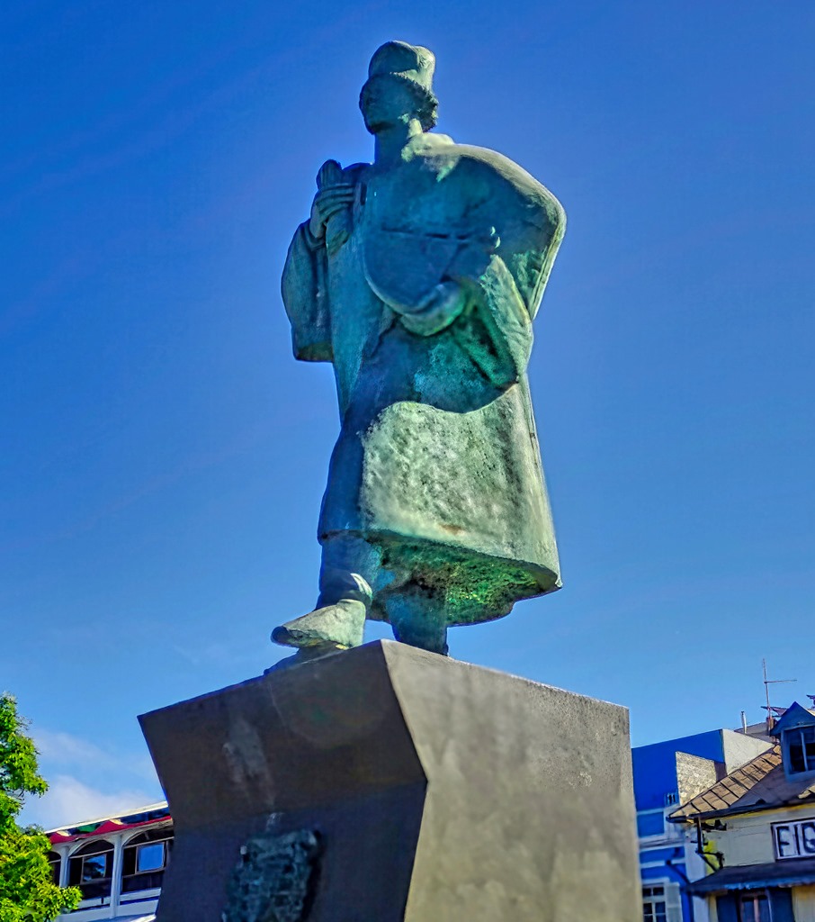 The Portuguese discovered this island around 1460 and its discovery is attributed to Diogo Afonso, one of the explorers sponsored by Henry the Navigator. A large statue of him sits on the waterfront facing the bay. Also near the waterfront, located in a traffic circle, is a tall sculpture of an eagle on top of what looks like a tower of rocks. In 1922 the aviators Sacadura Cabral and Gago Coutinho made the first air crossing of the South Atlantic, flying in several stages (with 3 different planes) from Lisbon to Rio de Janeiro. The trip, to commemorate the 100th anniversary of Brazil’s declaration of independence, took almost 3 months because of having to ditch and replace their plane several times on the way, Their last stops before crossing the ocean were in Mindelo and Praia, Cabo Verde. The eagle sculpture was erected on the 76th anniversary of their flight, which would have been 1998.