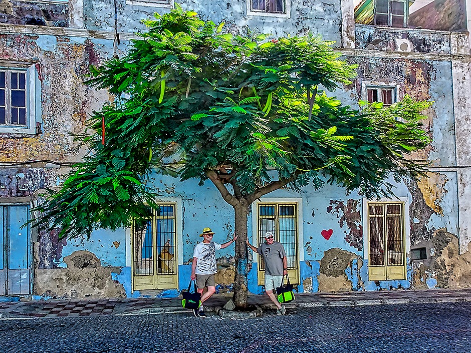 The morning of December 11 dawned for us in Porto Grande Bay in Mindelo, another city in Cabo Verde. Founded in 1793 by the Portuguese, the town was named Mindelo in 1838 to commemorate a successful military landing near Porto during the Portuguese Liberal War. Its population is around 70,000, accounting for most of the population of the island of São Vicente. As a long voyage starts coming to an end one begins to tire of long excursions (particularly on a bus) so unless there is something we really want to see we tend toward just walking around the port city on our own. We had never been to Mindelo so this seemed a good plan here, a relaxing walk around the town. We set out on the shuttle bus with our friends Robert and Bill to get a feel for the city.