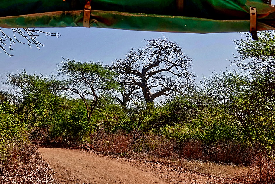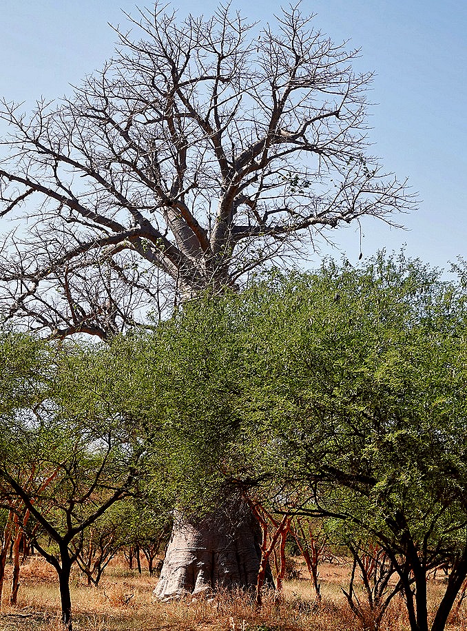 Bandia Reserve has a large number of Beobab trees scattered throughout. These large trees can live a thousand years or more and have very fat trunks with a lot of water in them. They stood out from other trees during our drive because they were very white and mostly leafless (in addition to being big). Near the end of our drive we stopped by a particularly large one and our guide explained that inside this living thousand year old tree is where the indigenous people of the area bury their Griots when they die. Griots are African storytellers who preserve the local history through oral performance, with or without instrumental accompaniment. This is similar to Homer, the somewhat legendary blind troubadour of ancient Greece credited with authorship of the Iliad and the Odyssey even though he would not have been able to read or write. Griots are prominent people in their societies, often important advisors to the local headmen. Our guide told us that after several generations the local people decided to stop burying their griots in this tree, but then they were hit by several years of drought. This convinced them to resume the practice, after which the drought ended. On the other side of the tree from where we were parked there is apparently a large hole in the bottom of the tree with a metal fence, behind which can be seen a couple of skulls.