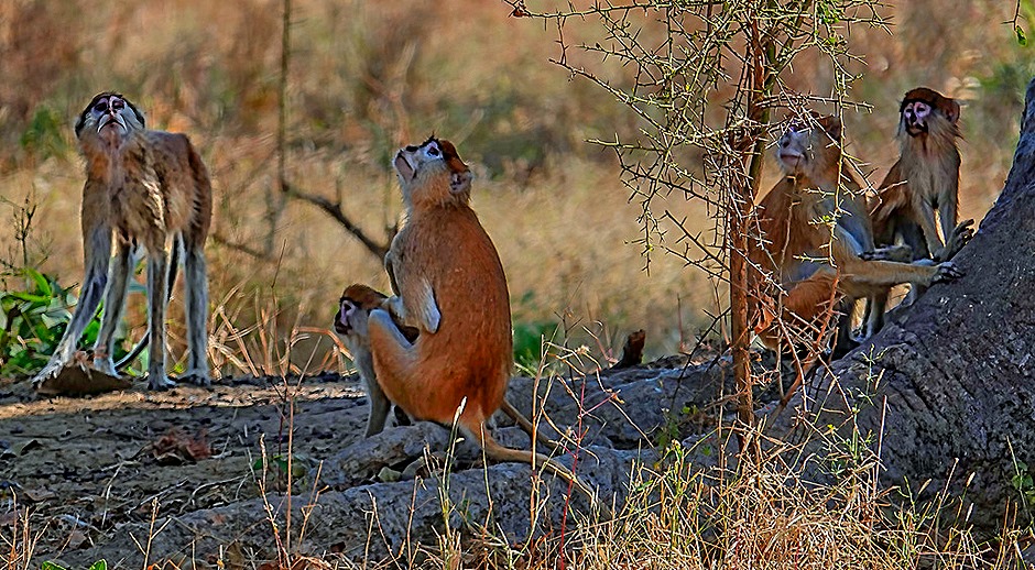 We saw some Patas monkeys on the ground and sitting on logs. These are ground dwelling monkeys and they are the world’s fastest primates, able to run more than 30 miles per hour. I guess that comes in handy if you want to stay alive while living on the ground, although there doesn’t seem to be any danger in this area.