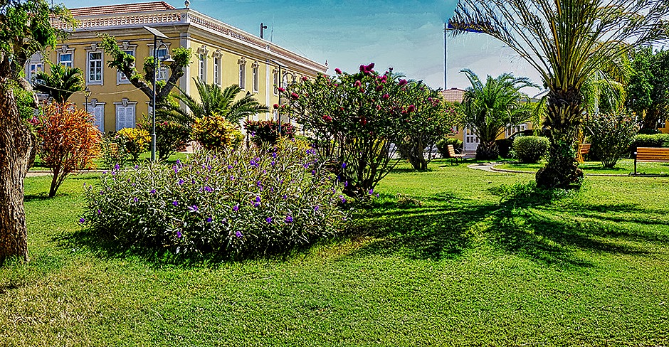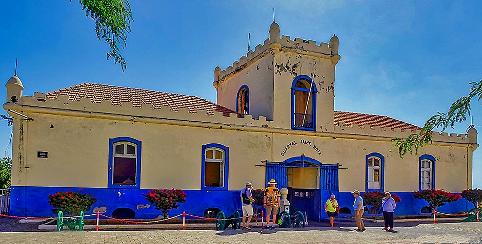 The large green square at the center of the city is called Praca Alexandre Albuguerque, named after a Portuguese governor of Cabo Verde. Along its side is the Pro-catedral Nossa Senhora d Graca (Pro-Cathedral of Our Lady of Grace). It opened in 1902 and is the seat of the Catholic Diocese of the island that dates back to 1533. Facing the square on another side is the Quartel Jaime Mota, which opened in 1826 as a military barracks. The current building dates back to 1872 and has been modified since. Jaime Mota was a Cape Verdean revolutionary killed by the Portuguese before independence, after which this building was named for him. It is unclear to us whether today it is used by the military or the police.