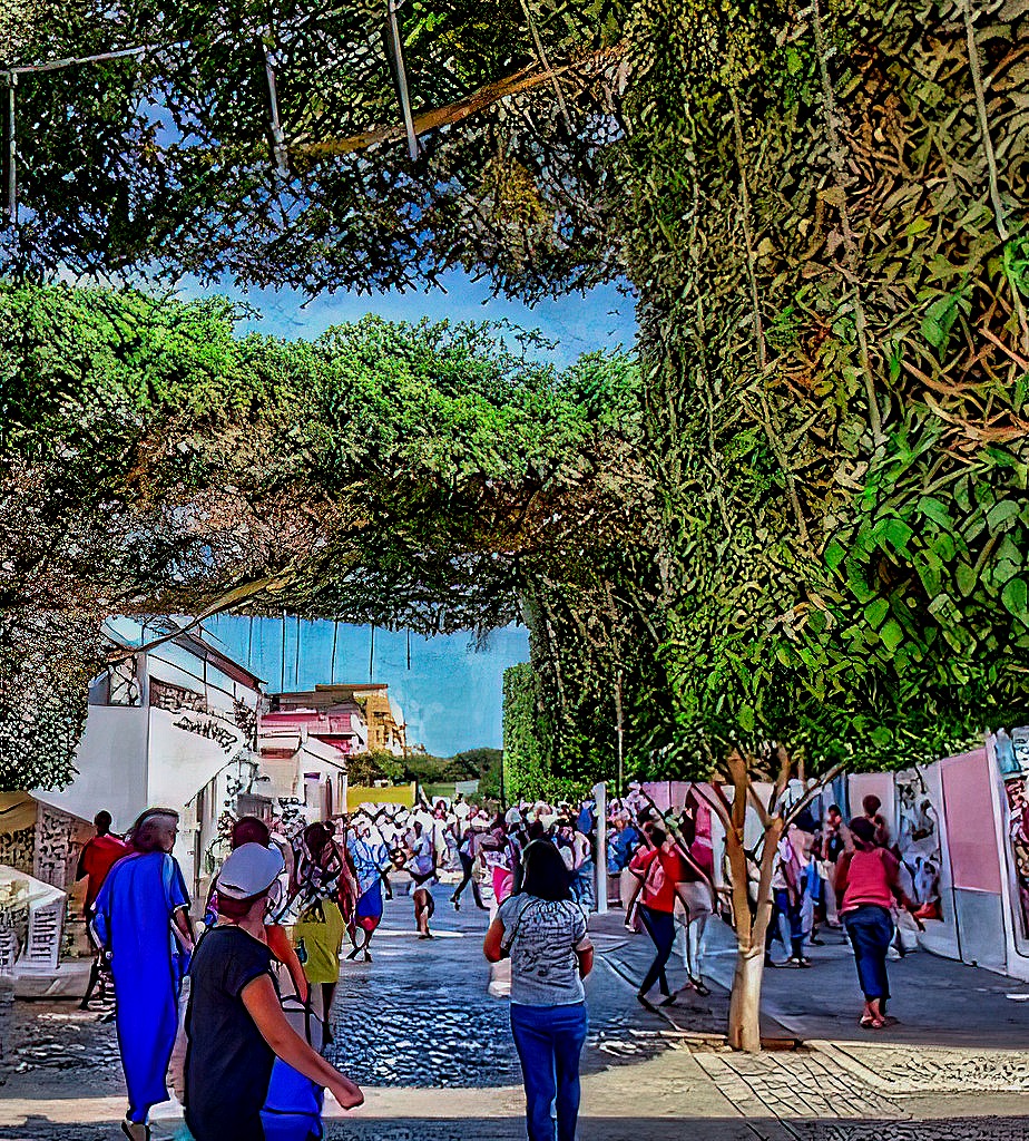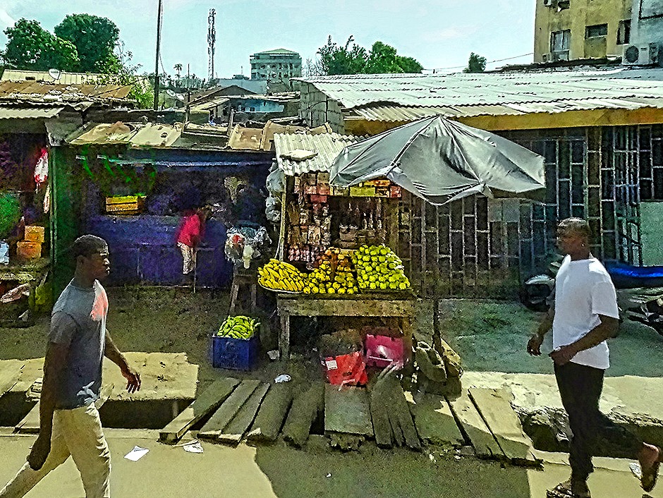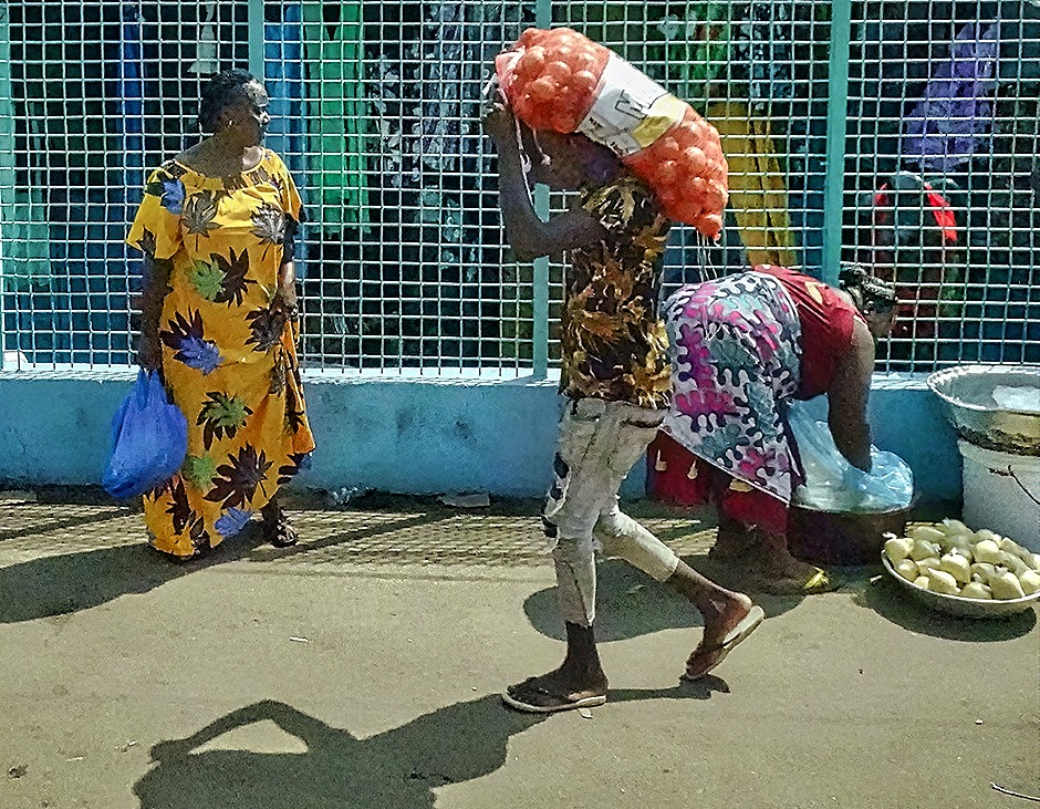 The Avenida 5 De Julho (date of independence in 1975) is a pedestrian street lined with trees on both sides that have been pruned to form a sort of canopy over the street. When we were here last in 2018 this was just getting started and none extended over the street but there has been notable progress since then and the street is now completely covered. It looks very nice and provides important shade to walkers. On this street we visited the Municipal Market, a covered building full of stalls on two floors. It was early so the market was not yet crowded.