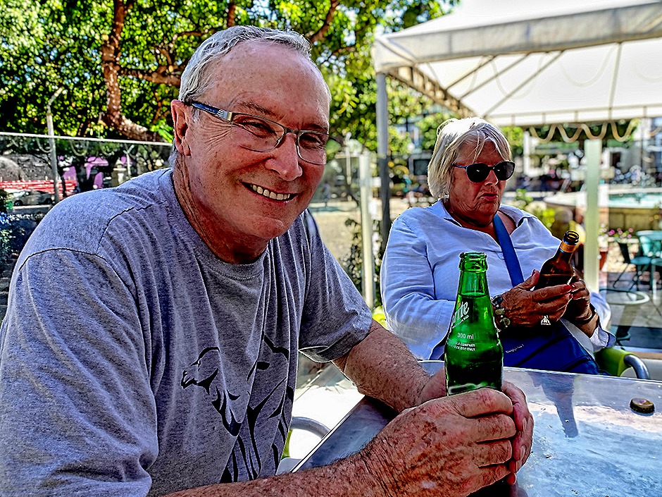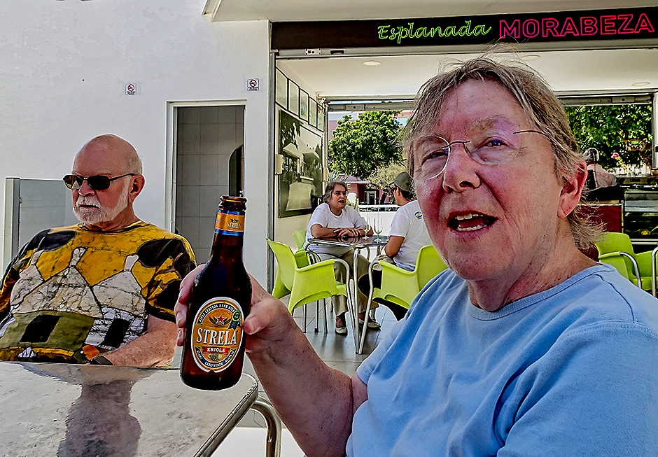 It was a hot day and we had done a lot of walking so we stopped at a place called Esplanada Morabeza in the square for a beer and a bite to eat. It had a shaded outdoor patio to relax on. We had a Strela beer and also ordered hamburgers. The beer was cold and good but the hamburgers were all but inedible. People who know Rick will realize how unusual it is for him to leave most of a hamburger on the plate, so you know it wasn’t good.