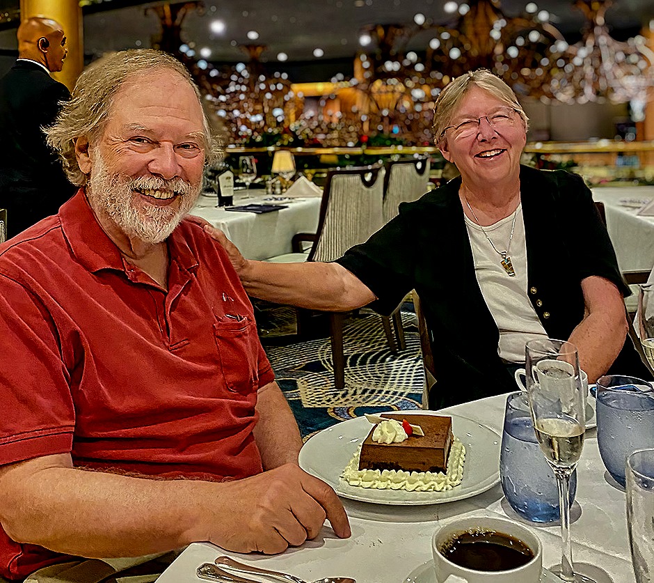 Back on the ship at dinner we had a modest celebration of a significant event. Three quarters of a century ago, on this date, Rick was born. Wow, three quarters of a century! Who could imagine that someone who looks so young could be so old? As usual on birthdays the restaurant staff brought us a small birthday cake and sang the Indonesian birthday song. A good time was had by all.