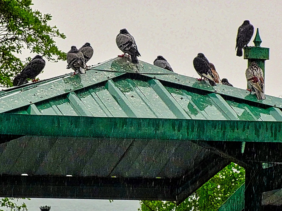 It rained off and on for most of the morning and a lot of passengers decided to spend the day on the ship. But not us! Carrying our umbrellas we ran through the rain to the shuttle bus and boarded for the lengthy trip into old town. The old town is built on a fairly steep hill up from the waterfront and the shuttle dropped us off in Columbus Square, a little way up. We walked around that delightful neighborhood for awhile, uncharacteristically gray from rain and overcast, and had to run for cover several times.