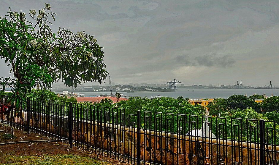 “It was a dark and stormy night . . . .” How many works of fiction start like that? Well, this isn’t a work of fiction and it was morning rather than night when we sailed into San Juan’s harbor on December 17, but the rest of that phrase applied. We got up early in the hope of seeing the sail in past the fort of El Morro that is supposed to be a good one. But the captain double-crossed us by arriving about a half hour before the scheduled time. So we missed it, getting out on deck only after we were well into the harbor. It was pretty dark still and rainy and overcast, so we probably wouldn’t have seen much anyway (those grapes were probably sour anyway, right?).
